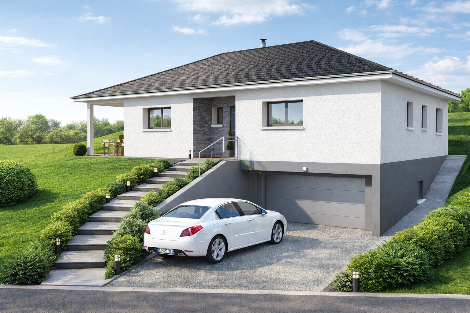 La construction est conforme à la réglementation environnementale RE2020 et réalisée dans le cadre d’un Contrat de Construction de Maison Individuelle, garantissant un prix ferme et définitif ainsi qu’un délai de réalisation sécurisé.